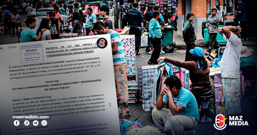El congresista Juan Bartolome Burgos Oliveros, de la bancada Podemos Perú, presentó el proyecto de Ley N° 14412/2025-CR que propone reorganizar el espacio público para incentivar la formalización del comercio ambulatorio.