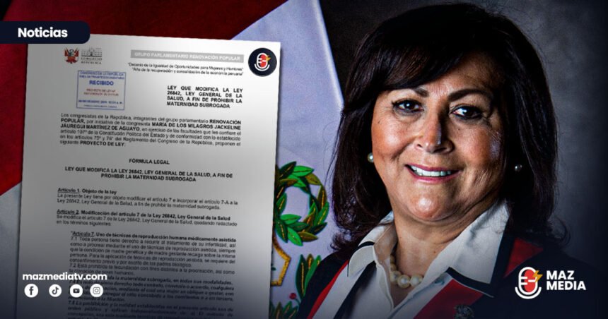 La congresista María Jáuregui, de Renovación Popular, presentó el proyecto de Ley N°13073/2025-CR que propone modificar la Ley General de Salud a fin de prohibir la maternidad subrogada.