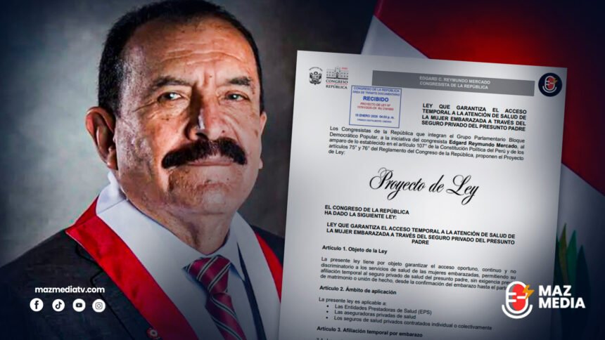 El congresista Edgard Reymundo Mercado, parlamentario del Grupo Parlamentario Bloque Democrático Popular, presentó el proyecto de Ley N° 13761/2025-CR que propone establecer el marco normativo que garantice el acceso temporal a las prestaciones de salud de la gestante mediante la cobertura del seguro privado del presunto progenitor.