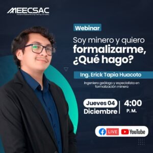 La formalización minera continúa siendo uno de los mayores desafíos para miles de pequeños productores y trabajadores artesanales en todo el país. En ese contexto, MEECSAC, en alianza con Maz Media TV, anuncia el webinar “Soy Minero y Quiero Formalizarme, ¿Qué Hago?”, un espacio diseñado para brindar orientación técnica y legal a quienes buscan integrarse de manera adecuada al marco normativo vigente. El evento se transmitirá este jueves 4 de diciembre a las 4:00 p. m. a través del Facebook Live y YouTube de Maz Media TV, MEECSAC y Grupo Marzano.